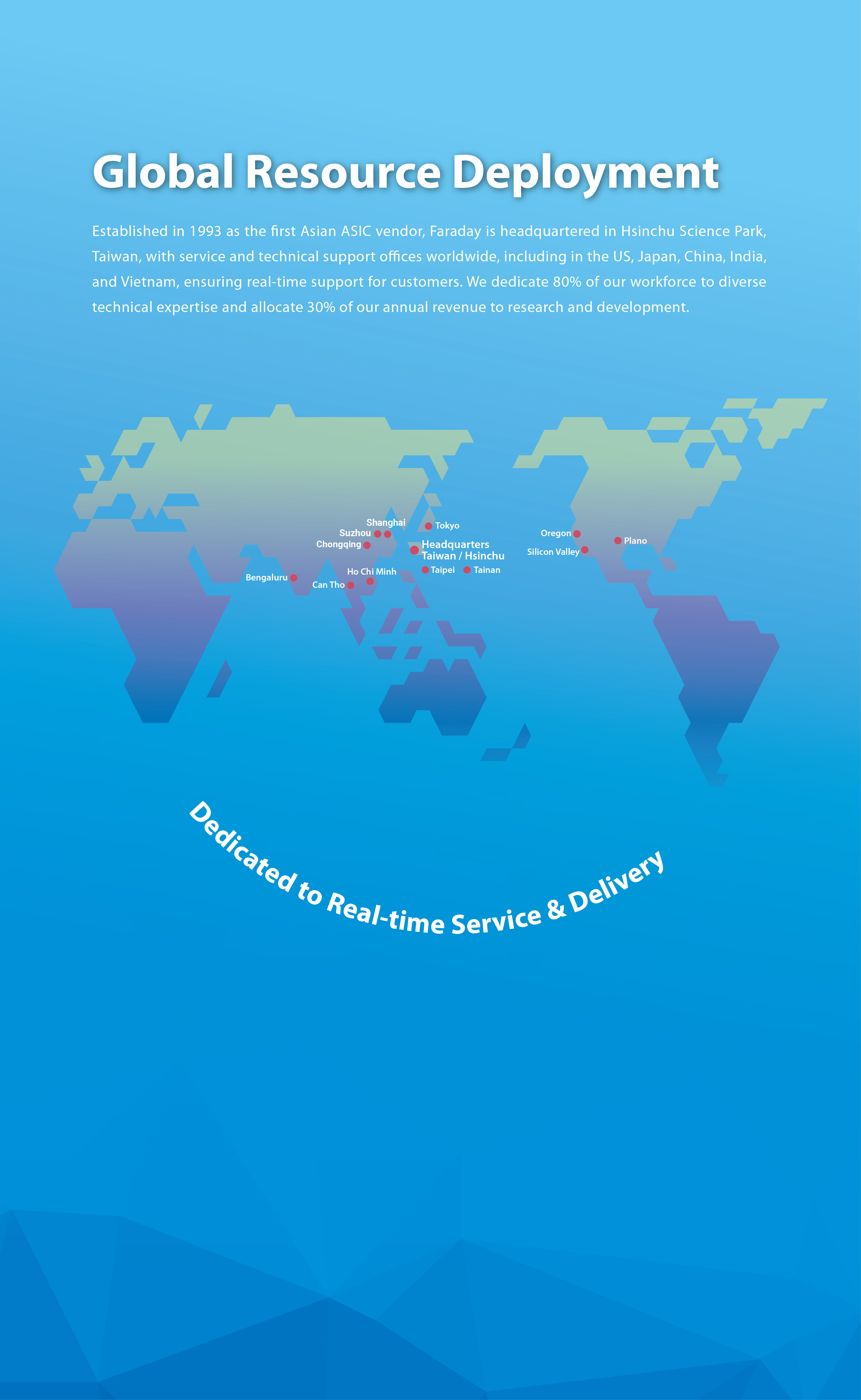 Faraday Technology Corporation is a leading fabless ASIC design and silicon IP (intellectual property) provider established in 1993 as the first Asian ASIC vendor. Faraday is listed on the Taiwan Stock Exchange (TWSE) under ticker number 3035.
