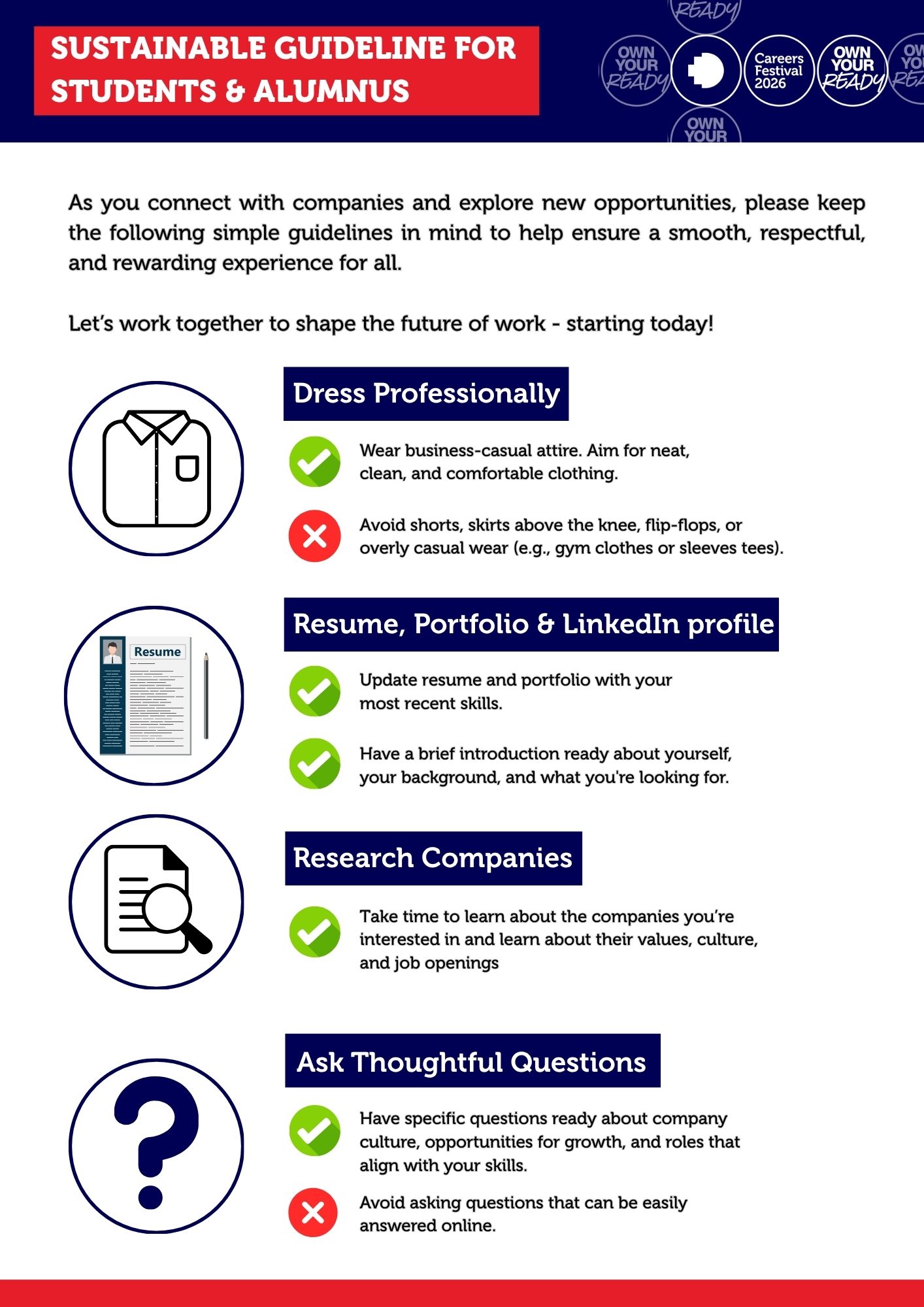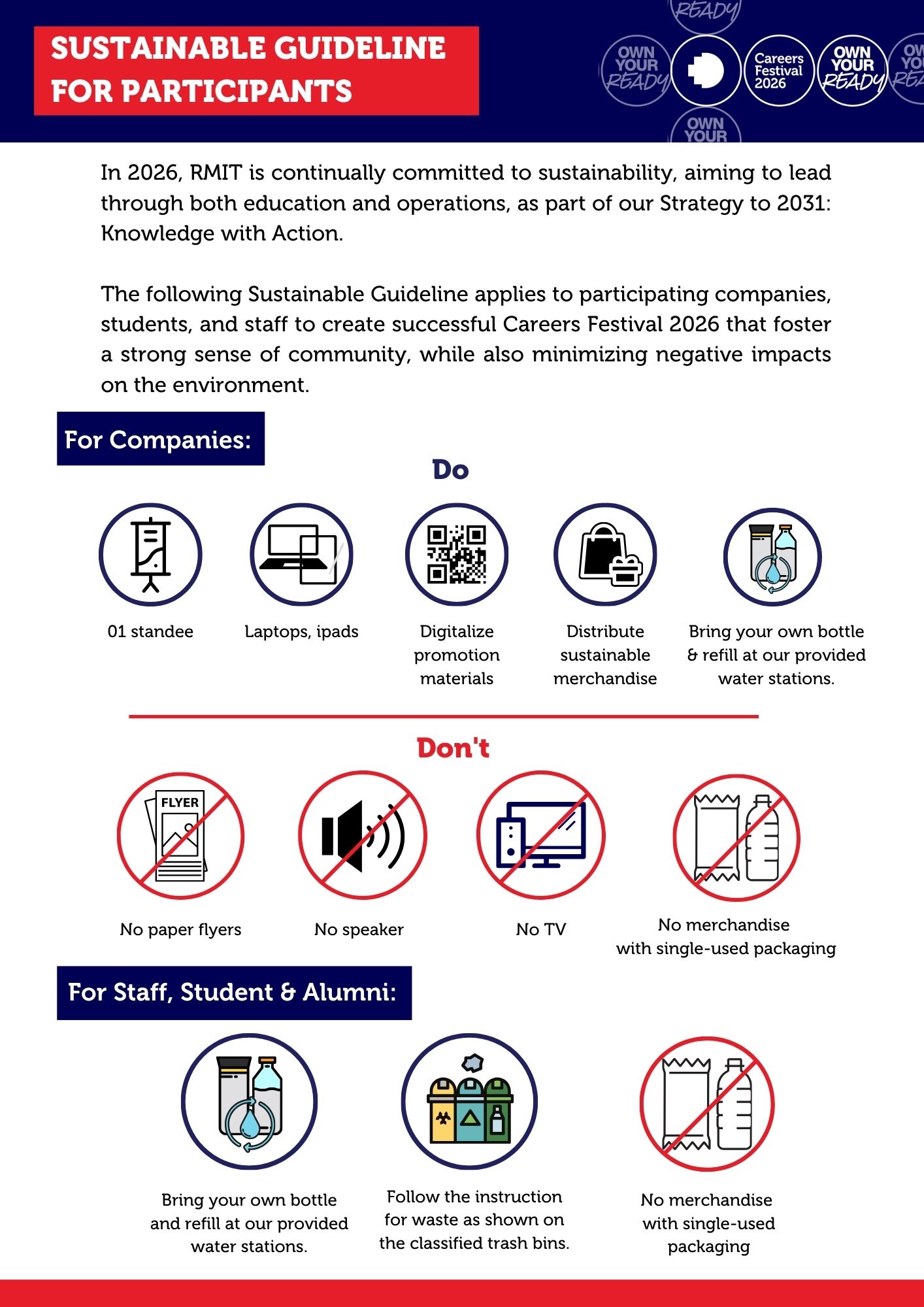 Participants are advised to refer only to the official Careers Festival landing page for accurate and up‑to‑date information. All Careers Festival activities are free of charge for all participants and are held exclusively at the RMIT campus.